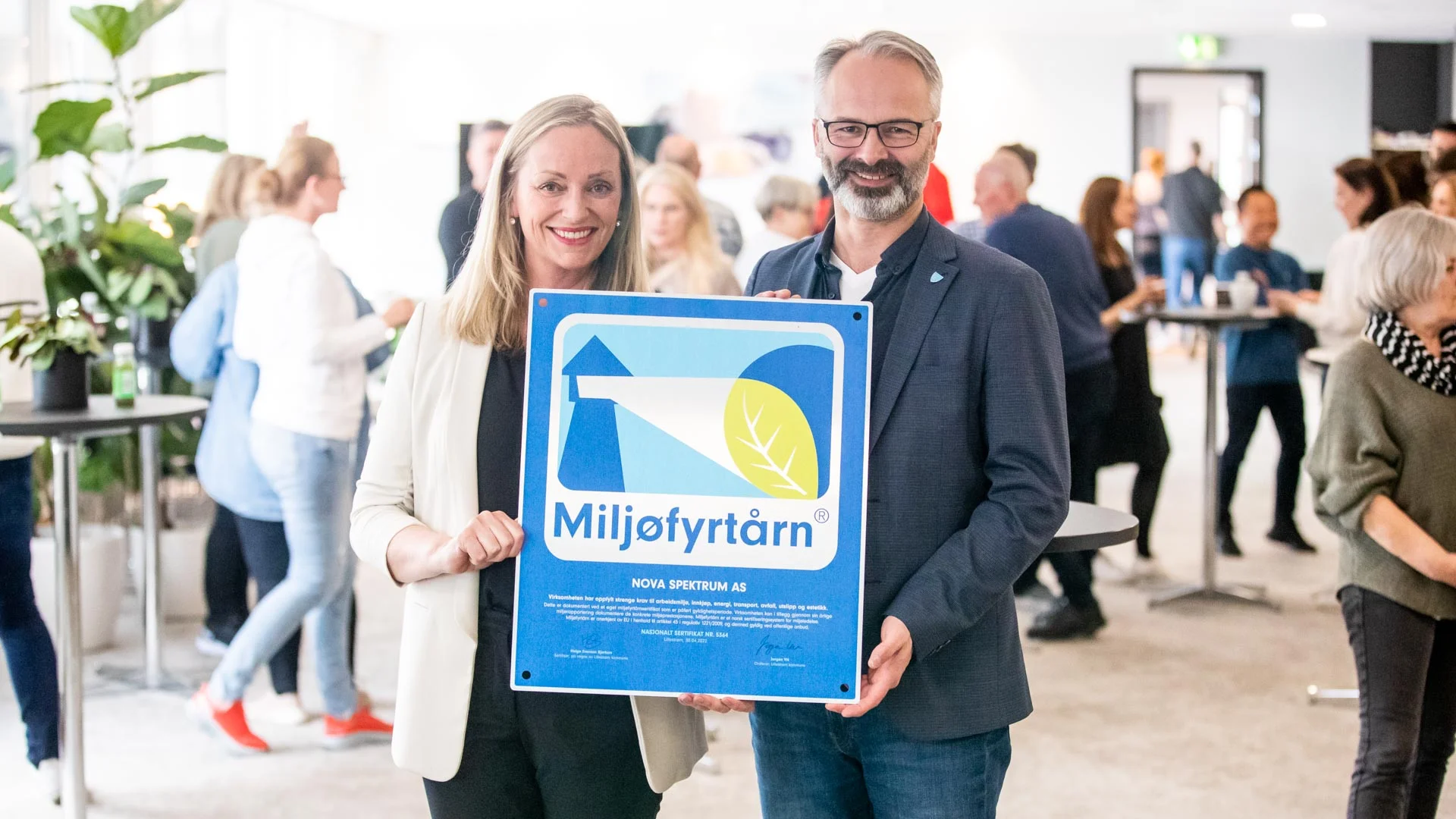 Ordfører i Lillestrøm Kommune, Jørgen Vik overrakte Miljøfyrtårn-sertifiseringen til vår administrerende direktør Gunn Helen Hagen.